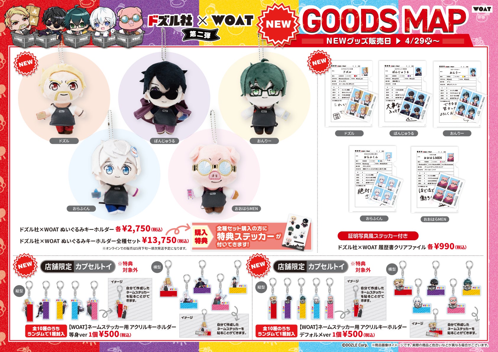 人気5人組ゲーム実況グループ「ドズル社」とWOATのコラボ第二弾となる『ドズル社 × WOATコラボグッズ』に追加アイテムが登場!4月29日より池袋 P'PARCO 2階 WOATで販売開始!