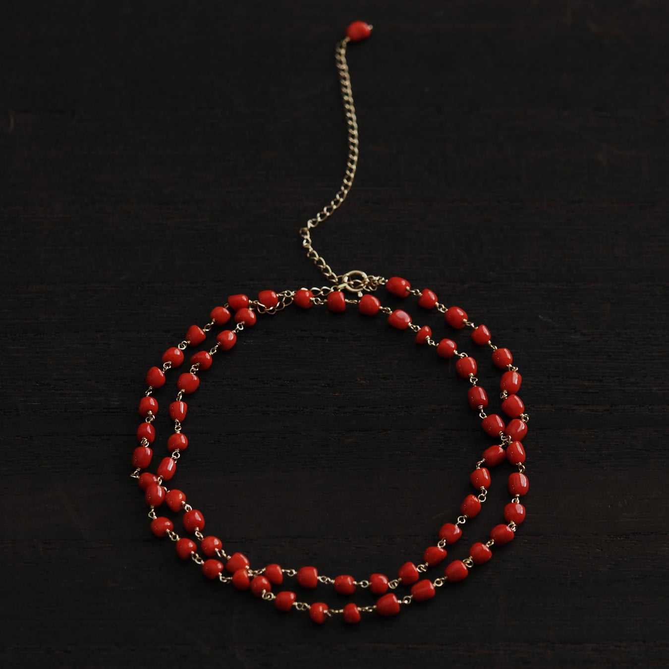 注目は、復刻を果たした「Pomme(ポム)」リング。センターストーン3mmを基準に、2.5mm〜2mmとサイズをグラデーションにセッティングした新作は、軽やかな印象とともに、手元に凛とした存在感を与えてくれます。また、サルディーニャ産の赤珊瑚を用いた繊細なロングネックレス、黒蝶真珠のケシ(タヒチ・ガンビエ産)を主役にしたブレスレットなど、天然素材ならではの表情を生かした逸品も多数登場。