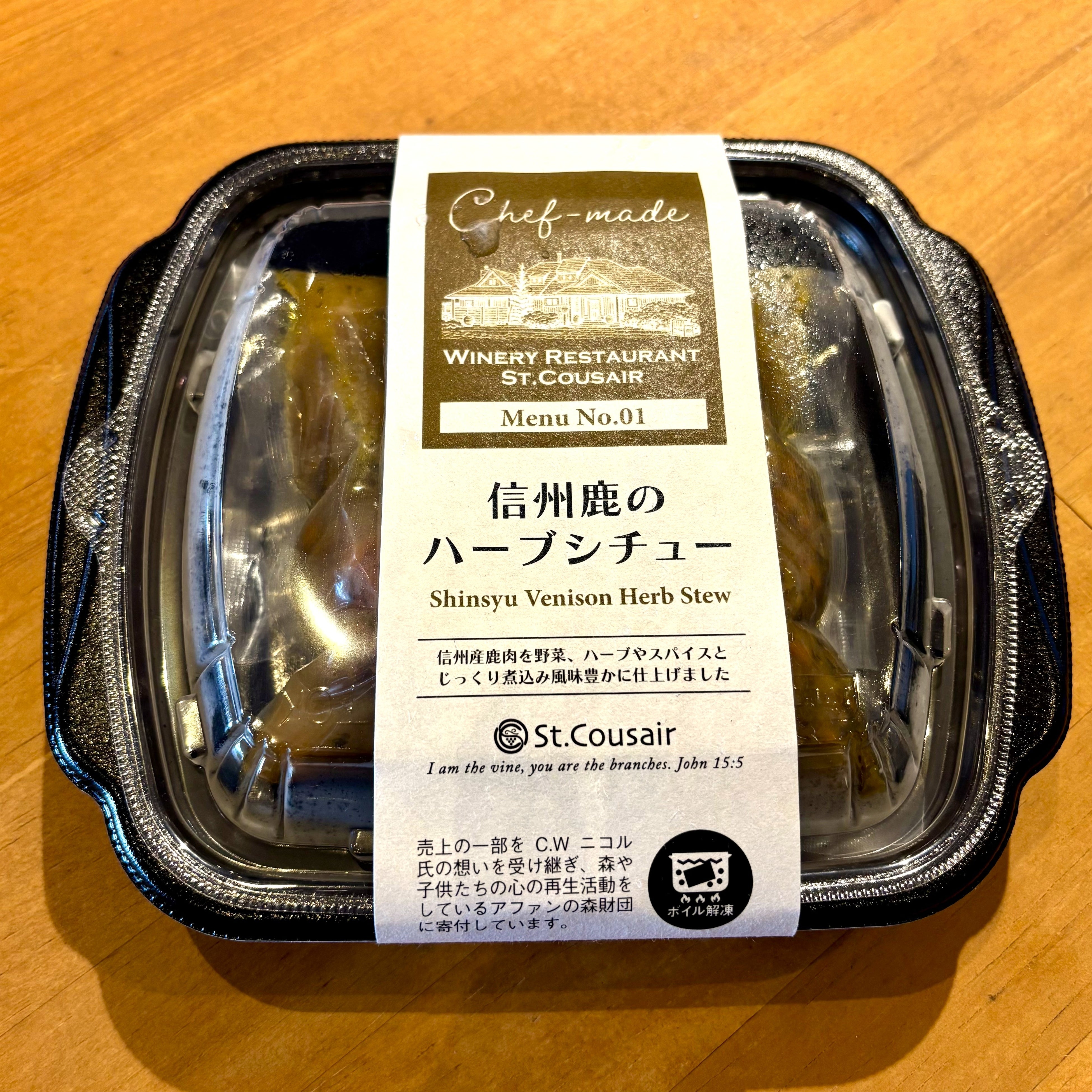 信州産鹿肉を野菜、ハーブやスパイスとじっくり煮込み仕上げた、CW.ニコルさん直伝のレシピをサンクゼール流に受け継いでいます。売上のうち100円がアファンの森に寄付されるチャリティ商品でもあります。