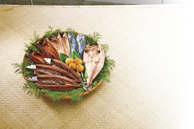 素材の旨みを引き出すために、塩・醤油の漬け汁にじっくり漬け込み、時間をかけて丁寧に干しあげた干物です。