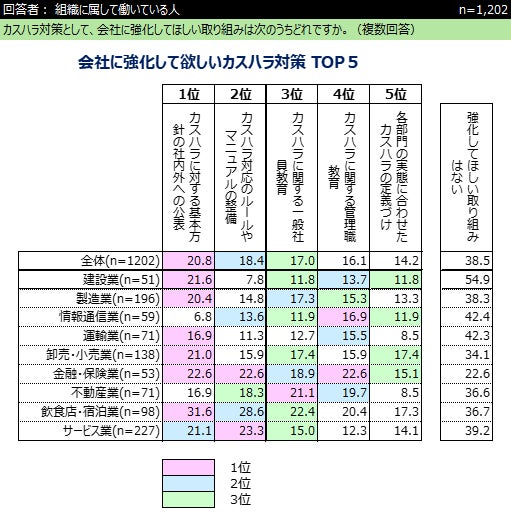 ■カスハラ対策として会社に強化してほしい取り組み