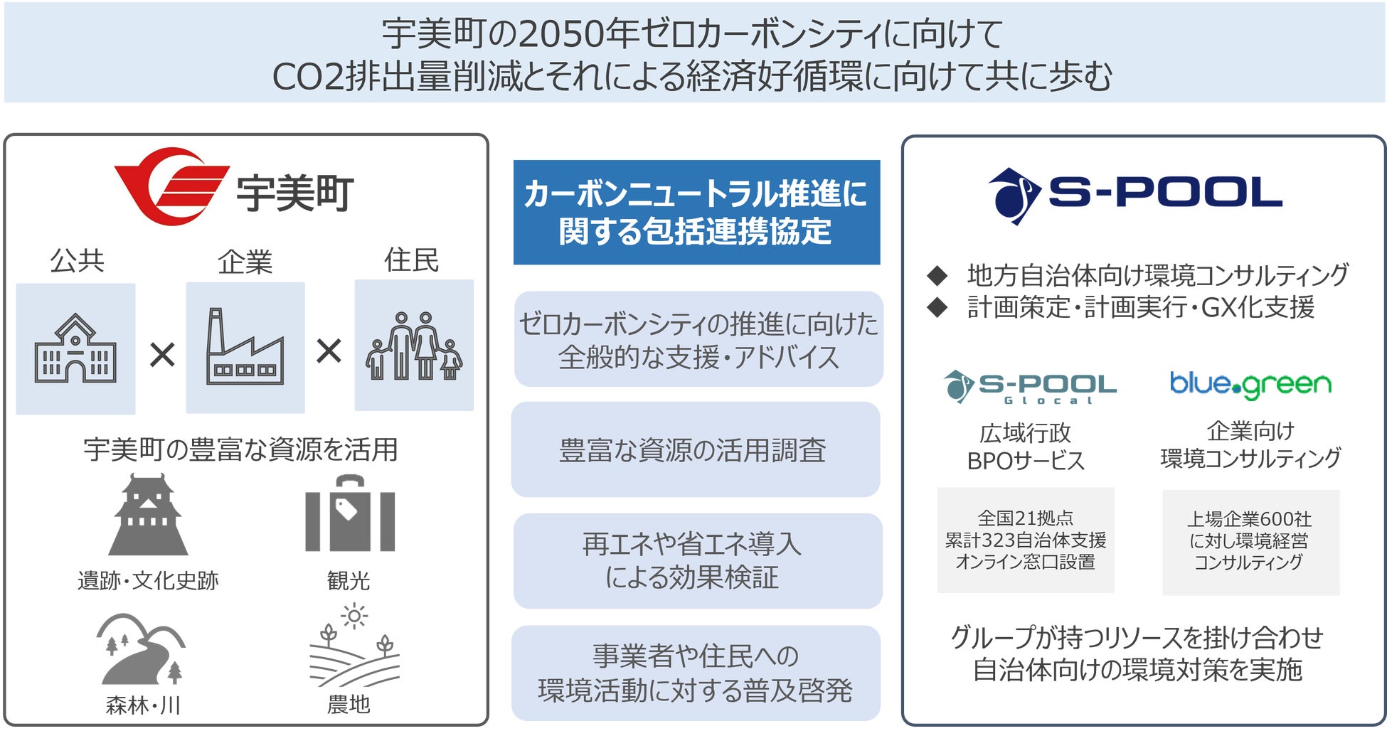 株式会社エスプール(本社:東京都千代田区/代表取締役会長兼社長:浦上 壮平/以下、「当社」)は、本日、福岡県宇美町(町長:安川 茂伸)と包括連携協定を締結し、同町における地域資源を活用したゼロカーボンシティの実現に向けた取り組みを開始することとなりました。