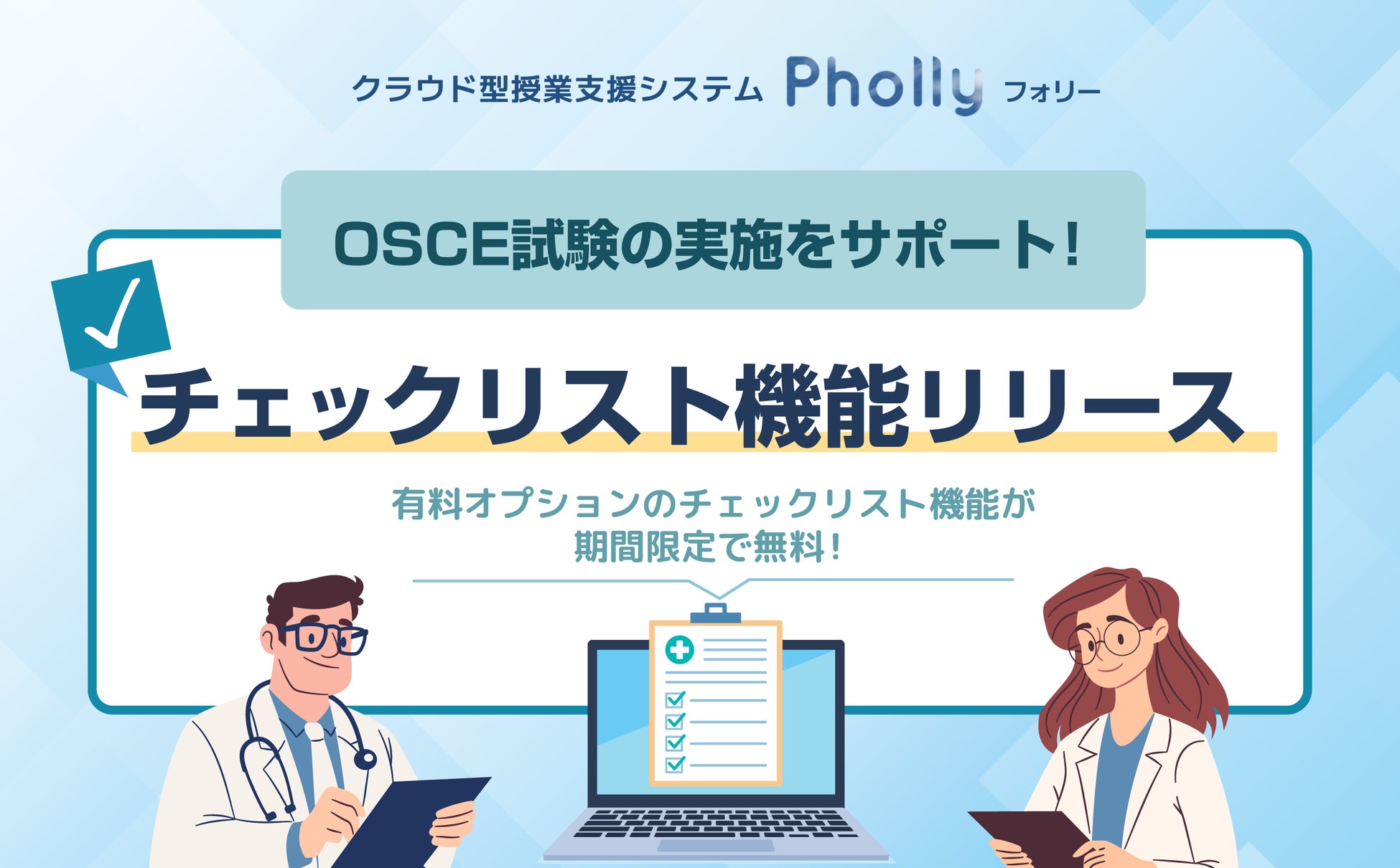 【新機能】OSCEのデジタル化を支援!「チェックリスト機能」をリリース 授業支援システム「Pholly(フォリー)」