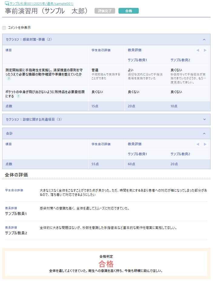 学生画面では、試験実施後すぐに試験の自己評価を登録することができます。また、複数の教員からのフィードバックをシステム上で比較することができるため、自身の課題の把握に役立ちます。