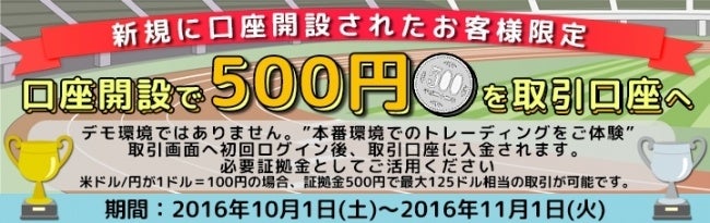 期間中に口座開設が完了し、初回ログインが完了したお客様全員に500円をご入金いたします。