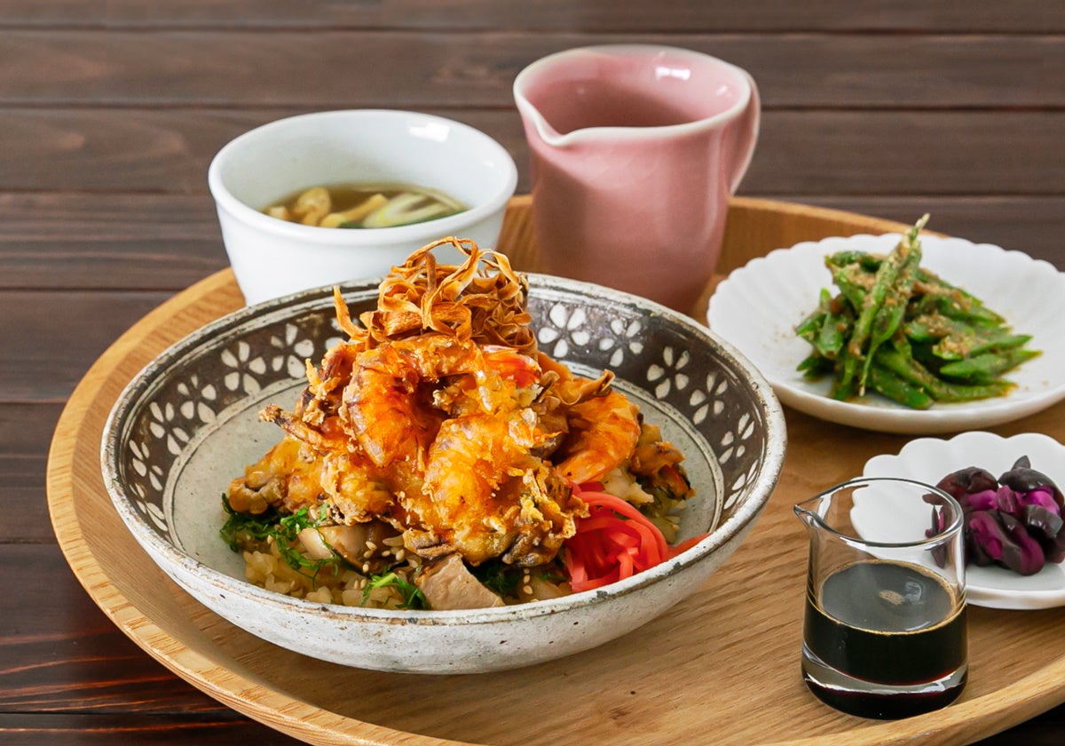 毎年ご好評をいただいている、秋の定番人気メニューがリニューアル。今年は、鶏肉の旨みとごぼうの食感が楽しめる「鶏ごぼうごはん」に、サクサクのかき揚げと、カリッと揚げたごぼうをトッピングしました。そのままかき揚げ丼としても、お好みで別添えの甘辛だれとだし汁を注いでお茶漬けとしても楽しめます。
