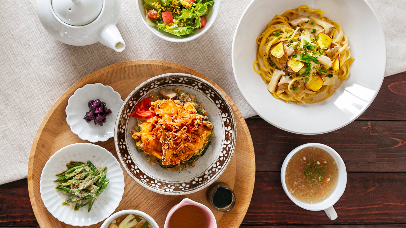 家庭料理をベースに、四季折々の彩り豊かな食材を使ったお食事や、食感や独創的な組み合わせにこだわったパフェやスイーツなど、「ゆとりの空間」オリジナルのメニューをお楽しみいただけます。