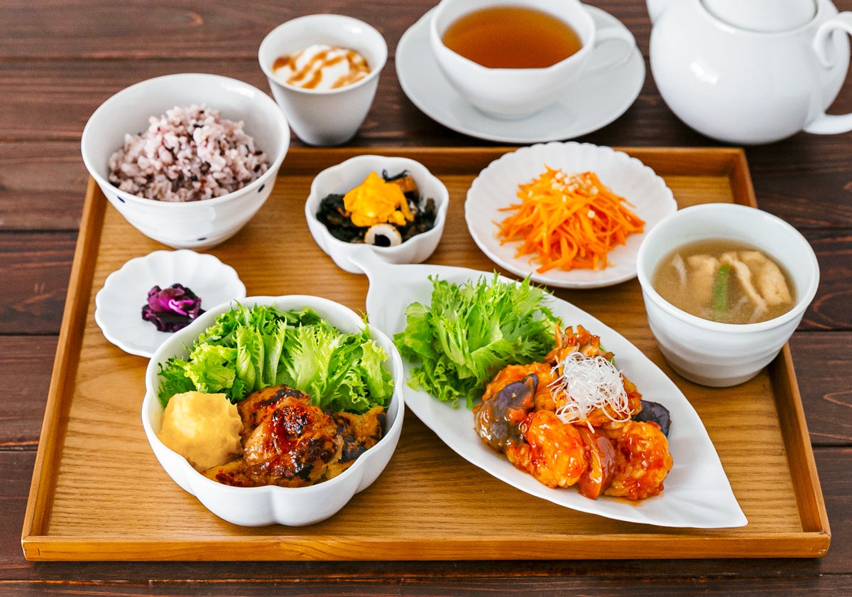 えらべるメインのおかずと、副菜やごはん、みそ汁などがセットになった人気のランチメニューが、夏メニューにリニューアルしました。メインのおかずには、人気の「揚げ鶏のねぎソース」に加え、西京みそに漬込んだ鶏肉をジューシーに焼き上げ、さつまいものマッシュを添えた「鶏肉の西京みそ焼き」と、プリプリのエビと旬の野菜をコクのあるチリソースで仕上げた「エビと秋野菜のチリソース」が登場します。