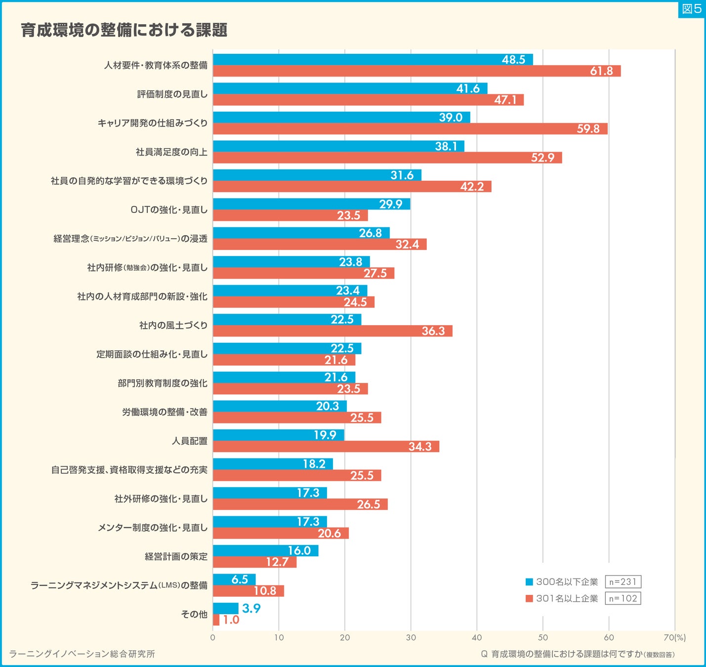 育成環境の課題、「人材要件・教育体系の整備」と回答する割合が最大