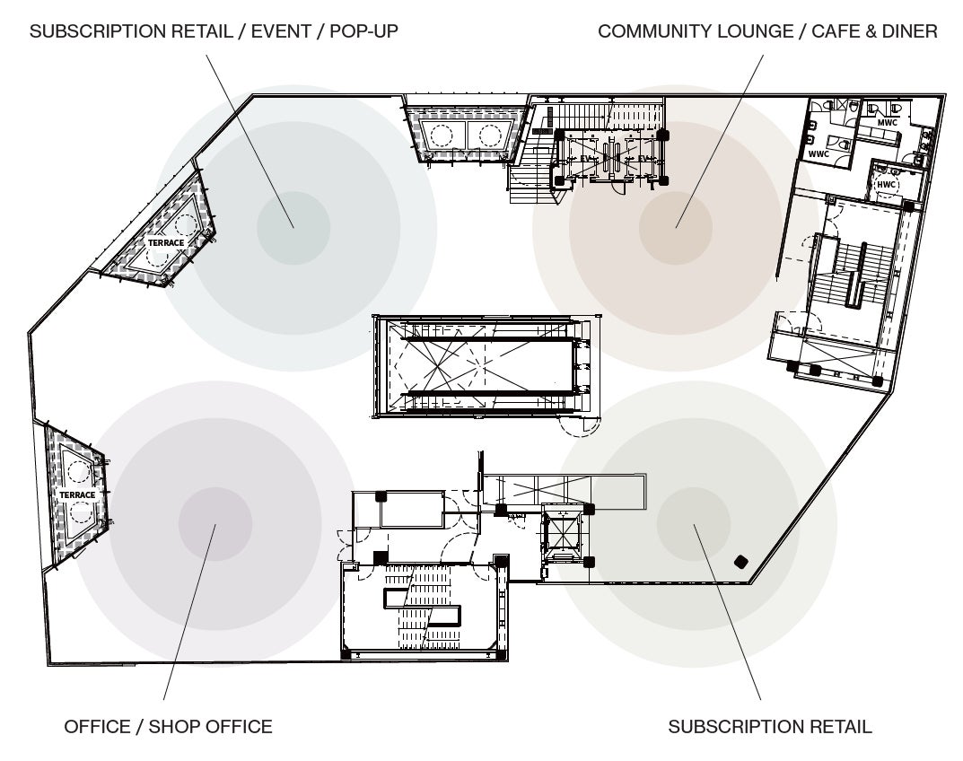 今回、商業施設での新しいカタチを考えるにあたってもこの観点が重要だと思い、コンセプトに反映しました。そしてこのコンセプト実現のために、運営目線で建築と滲み出しエリアの作り方を検討し、柔軟な運営方法の構築、コンセプトに共感し、フロアの価値を盛り上げてくれる仲間<メンバー>を集めました。ハードルは高いですが、利用者がショップを応援し、ショップがショップを応援し、利用者とショップのコミュニティーも広がっていく。そんな施設をめざします。