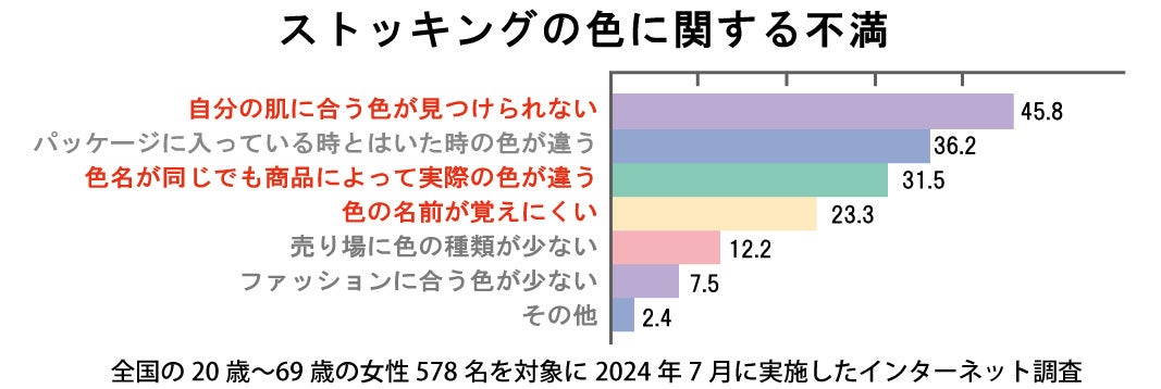 ■ストッキングの色に関する不満ナンバーワンは「自分の肌に合う色が見つけられない」
