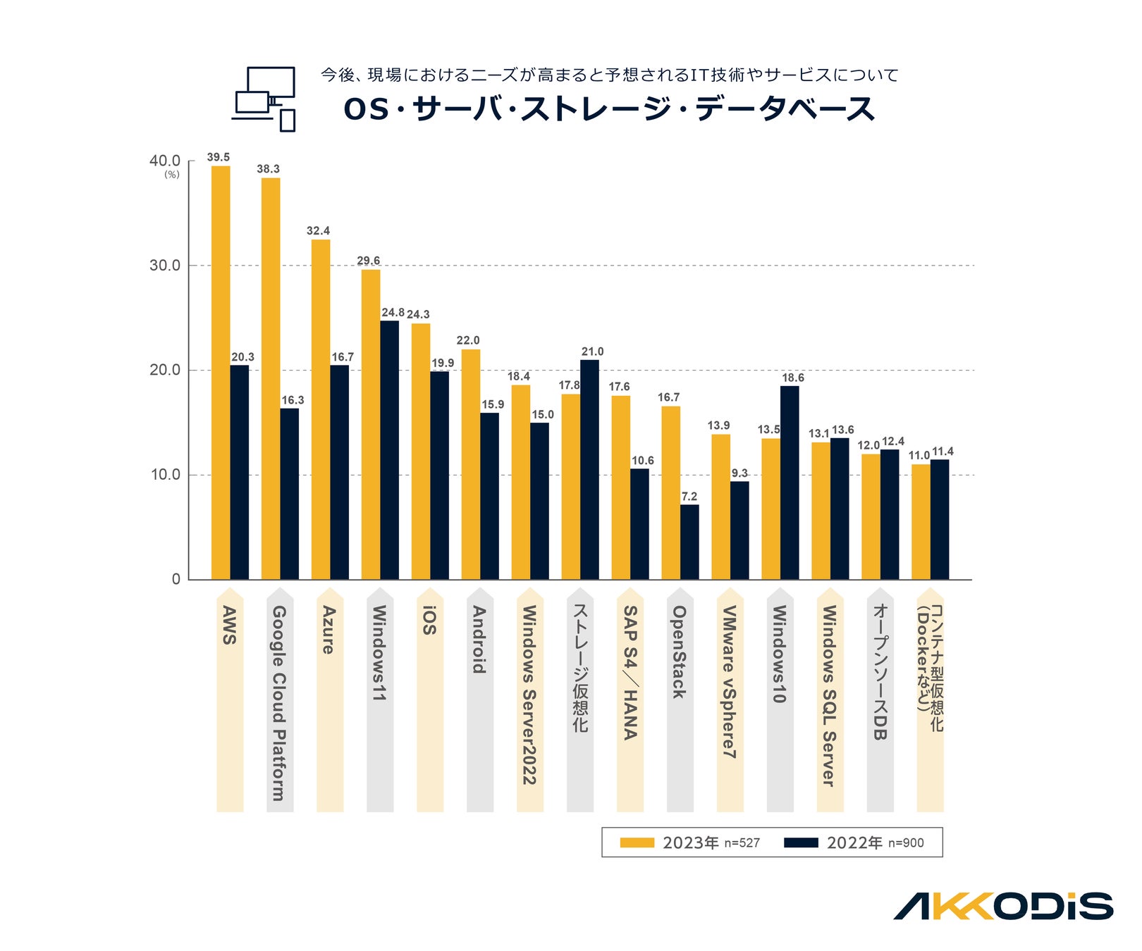 - OS・サーバー・ストレージなどの分野では、 「AWS」「Google Cloud Platform」「Azure」サービスのニーズが増加 –