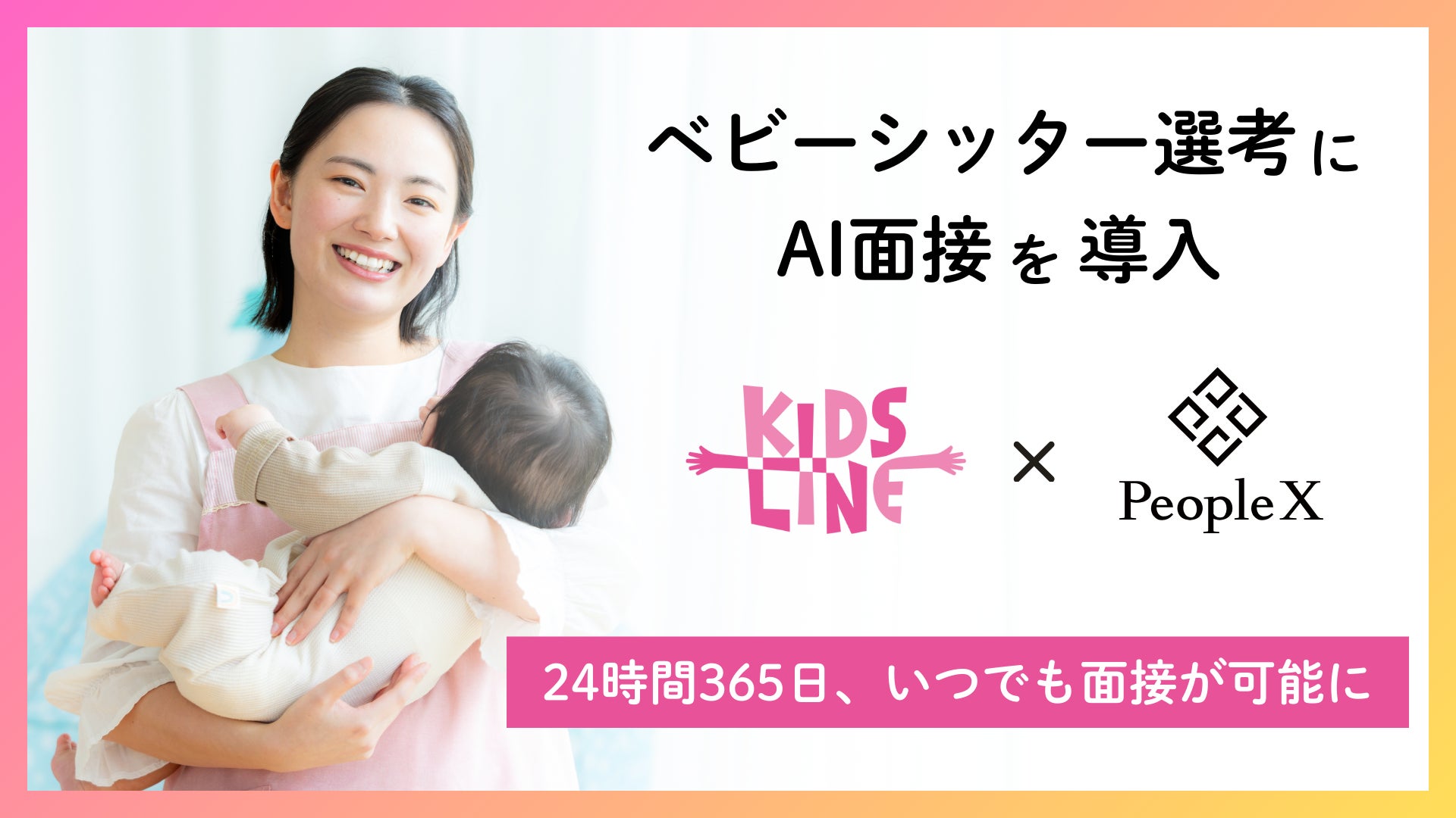 株式会社キッズライン(本社:東京都港区、代表取締役社長:経沢香保子)は、全国で展開するベビーシッター・家事代行サービス「キッズライン」において、株式会社PeopleX(本社:東京都新宿区、代表取締役CEO:橘 大地)が提供する対話型AI面接サービス「PeopleX AI面接」を導入しました。AI面接の導入により、応募者はいつでも一次選考を受けられるようになり、選考の利便性が大きく向上します。二次選考以降は引き続き専門スタッフが経験・保育スキル・人柄を丁寧に確認し、人の目による厳正な判断を通じて、安心・安全なサービスの提供を徹底してまいります。