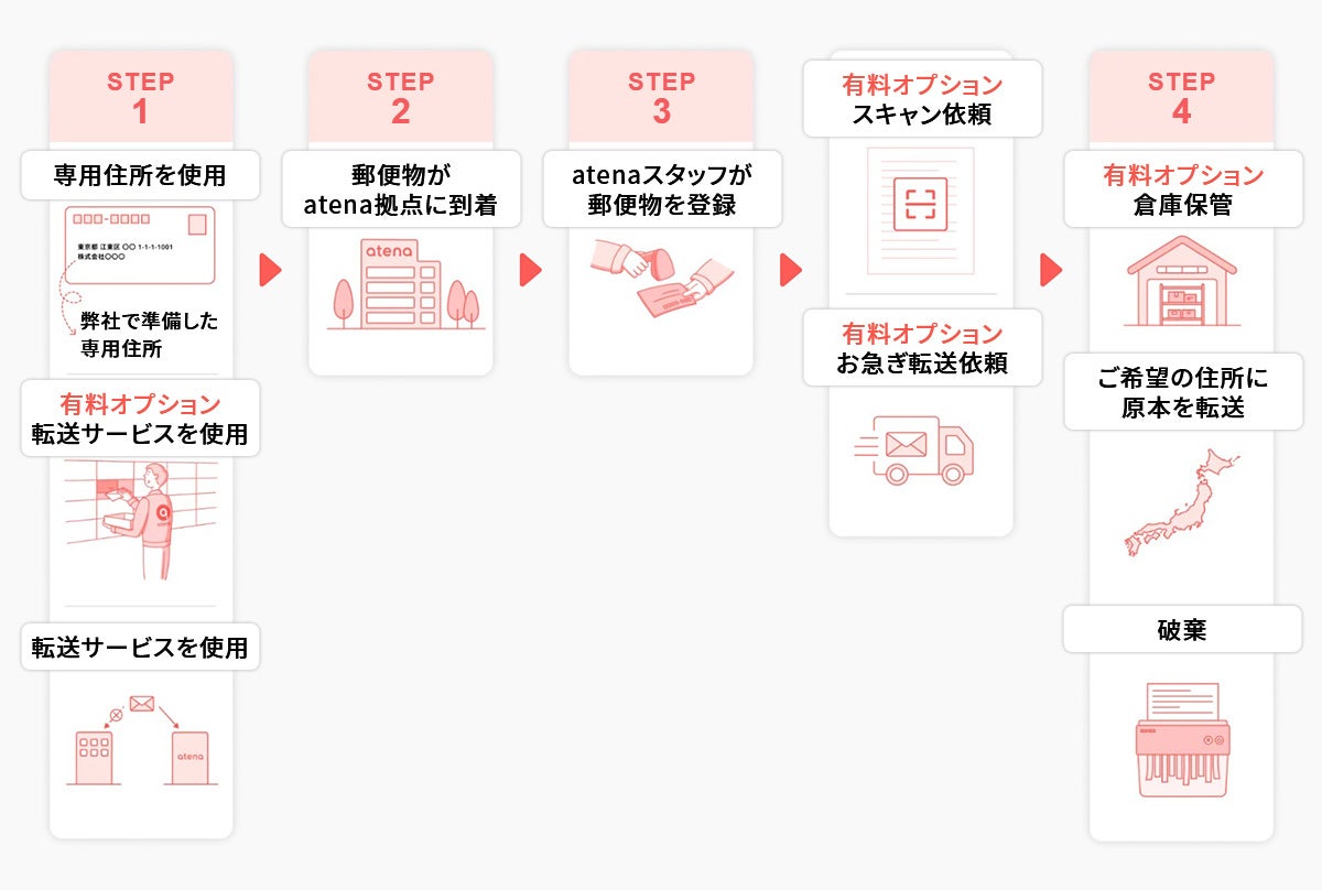 N Inc. は、会社に届く郵便を全て電子化して、テレワーク中の自宅などから確認ができる「郵便の管理」に特化したクラウド郵便サービス「atena」を提供しています。「atena」では郵送物の受け取りから管理・スキャンニング・保管や破棄まで、郵便物に関わる全ての作業をシステムで一元管理することが可能です。