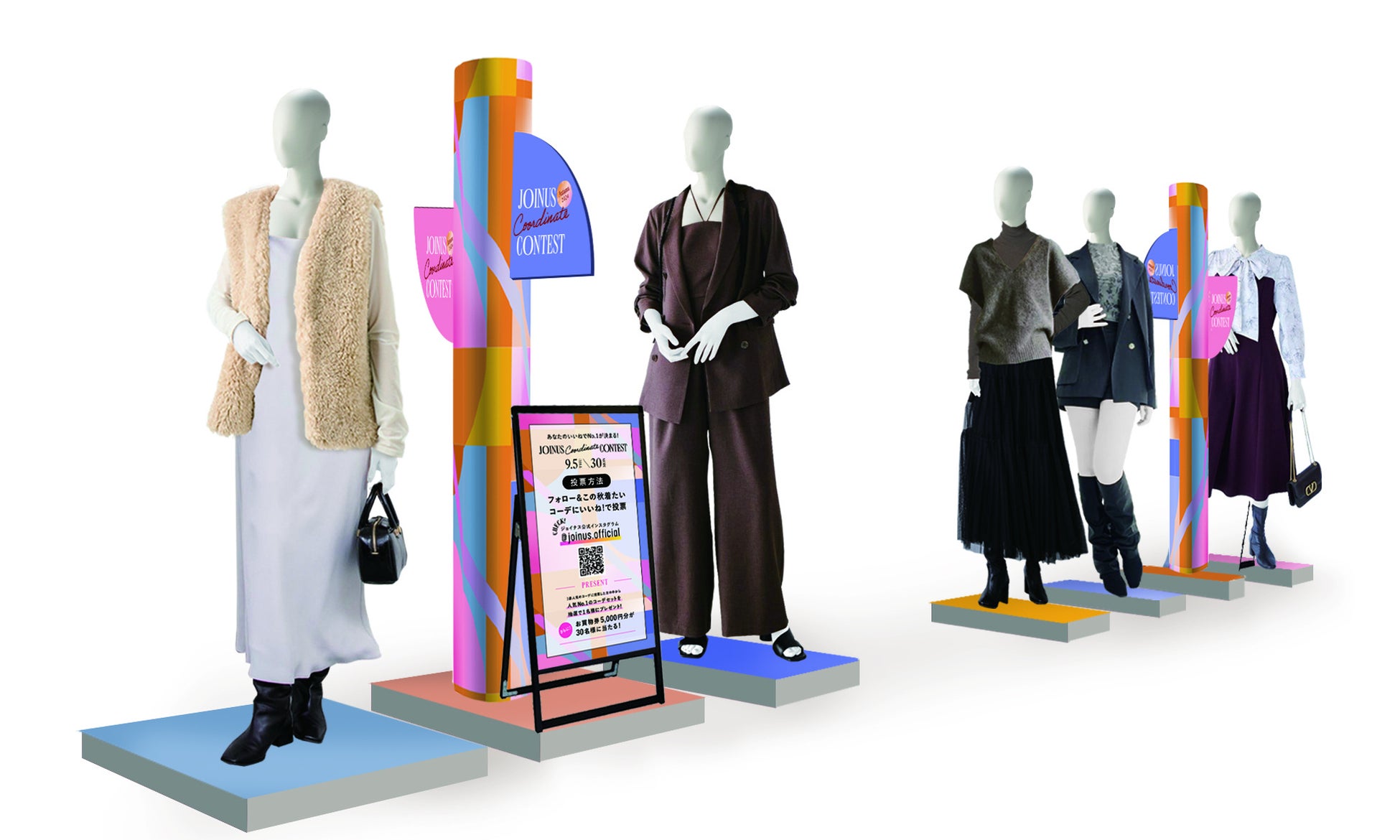 皆さまに投票いただく各コーディネートを、ジョイナス館内でも展示いたします。