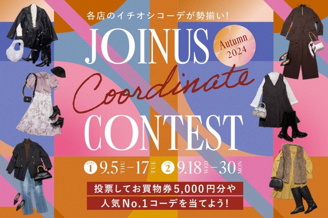 「ジョイナスコーディネートコンテスト」開催!2024年秋 各店のイチオシコーデが勢揃い!フォロー&いいねで投票すると人気No.1コーデやお買物券が当たるチャンス♪