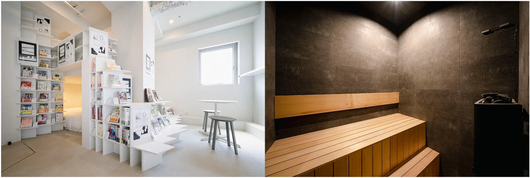 サウナ付き漫画アートルーム「白の洞窟 / MANGA CAVE WHITE」