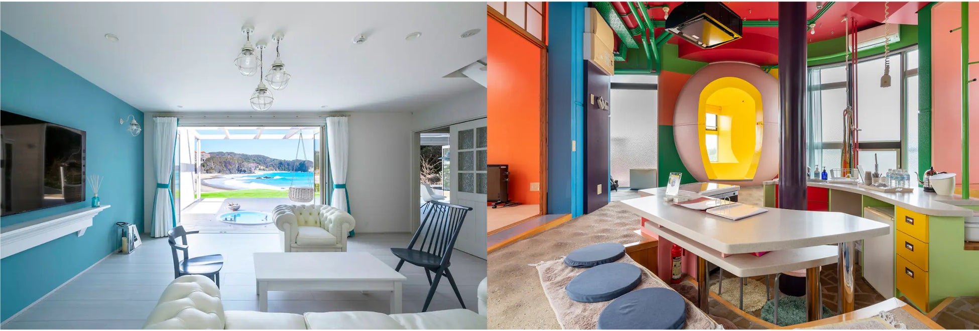調査の結果によると、日本人宿泊客による人気旅行先都道府県別上位は、沖縄、大阪、北海道、東京、静岡でした。同社が2024年5月に発表した夏の人気旅行先トレンド予測では、上位4都道県と京都がランクインしましたが、さらに、首都圏からアクセスも良く海の美しさがダイバーにも人気の静岡県の伊東・下田エリアが人気を集め5位にランクインする結果となりました。また、海外からの外国人宿泊客による人気旅行先都道府県別上位は、不動の人気を誇る東京、大阪、京都の3都府県に次いで福岡県福岡市が人気を集めています。全国的に引き続き厳しい残暑が予想されている9月、今回の調査結果で人気エリアとなった各地域の中から、暑さを凌ぎ室内でも存分に楽しめたり、涼を納める個性的なリスティング(宿泊施設)を紹介します。