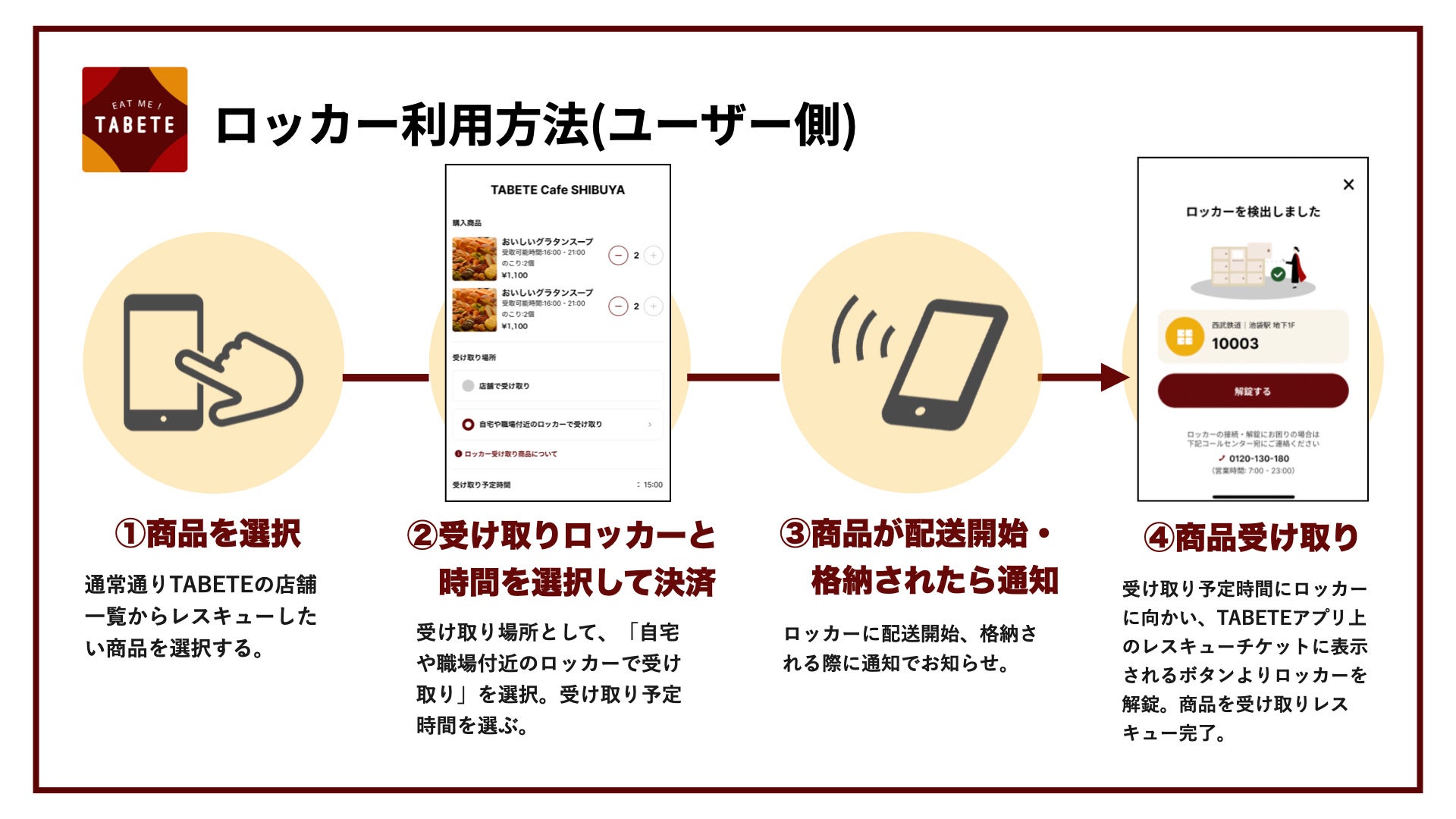 これまで、TABETEで決済された商品は店頭での受け渡しが主流となっており、閉店後に余ってしまう食品に関しては閉店後に店頭での受け渡しができないことから、取り扱いできる店舗が限られていました。