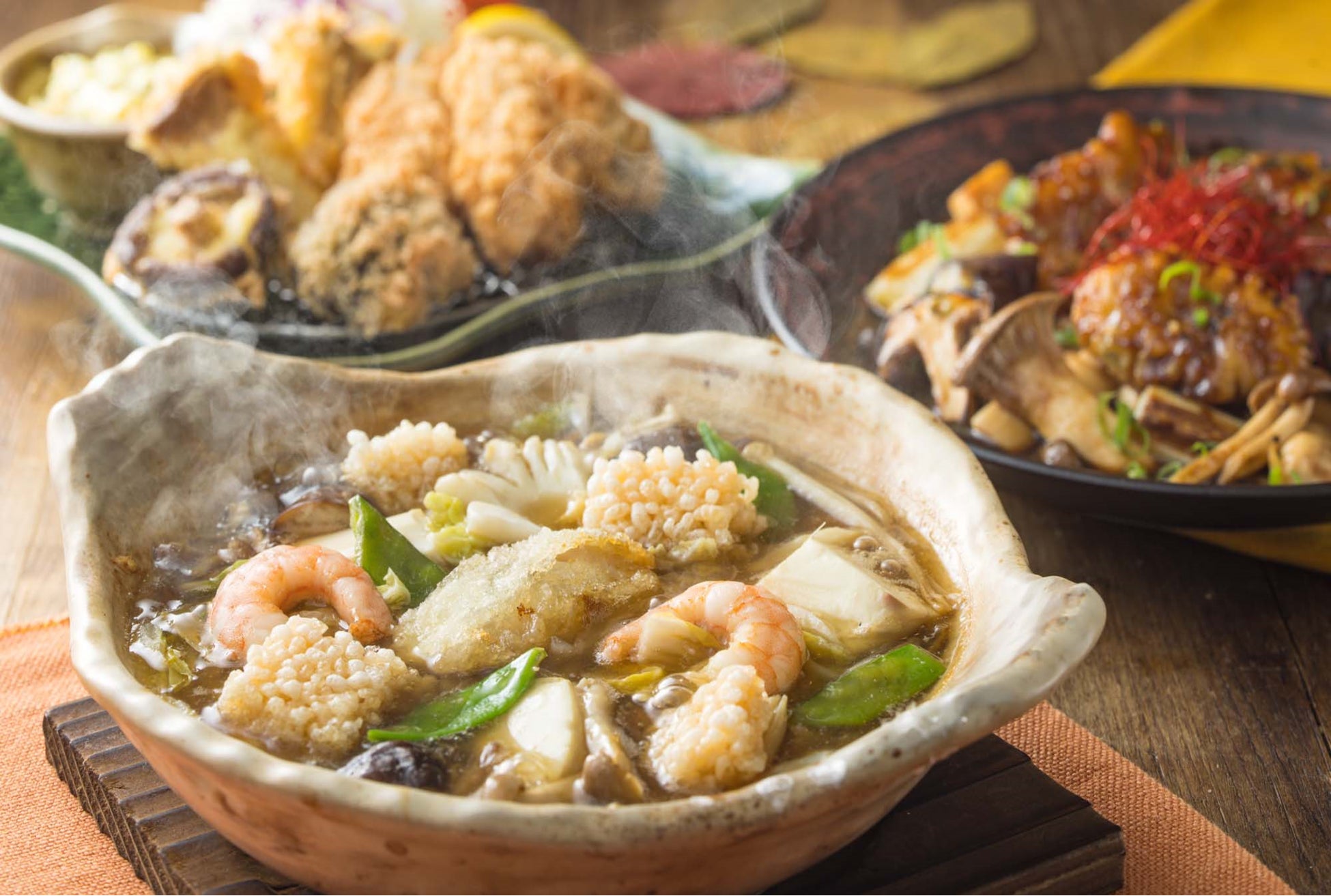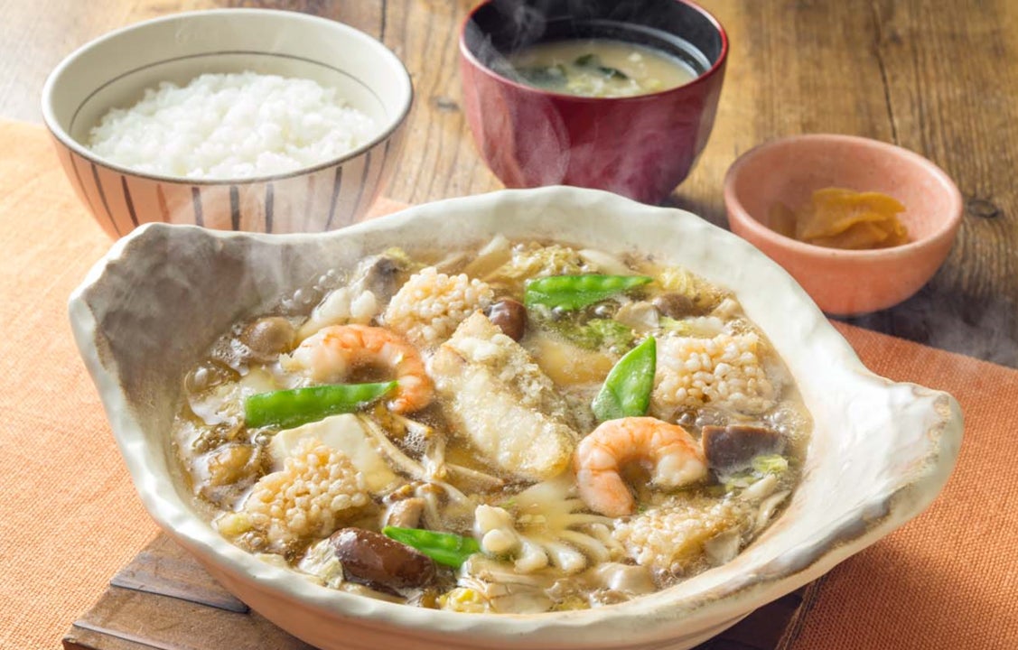 - たっぷり木の子とお出汁の海鮮スープあん土鍋定食
