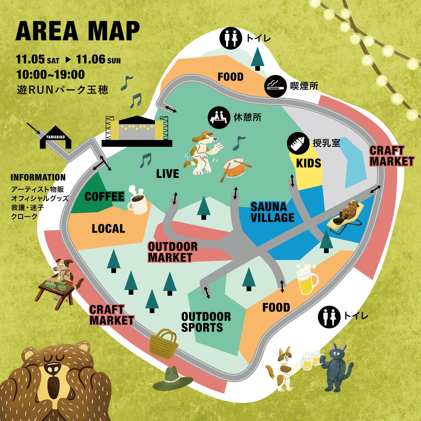 エリアマップ:https://www.yamabikofes.jp/map