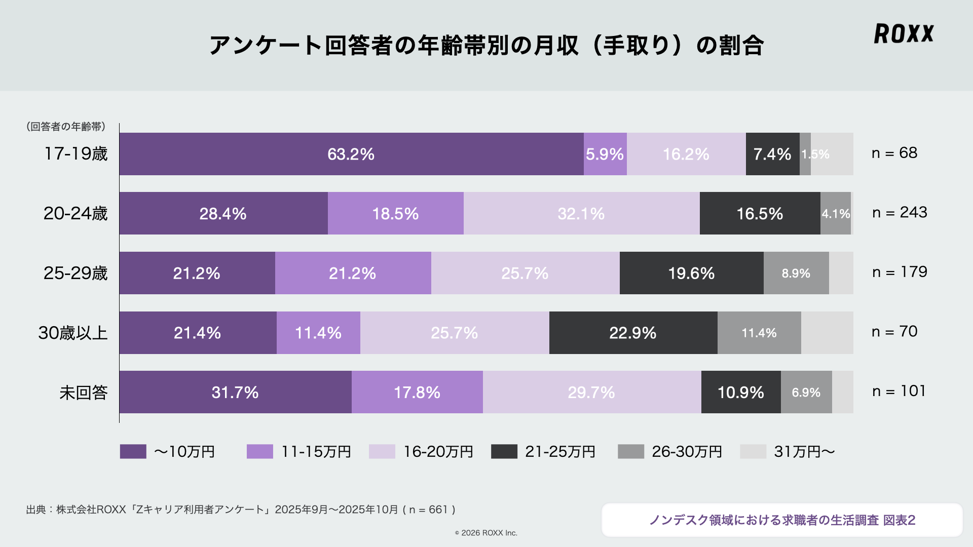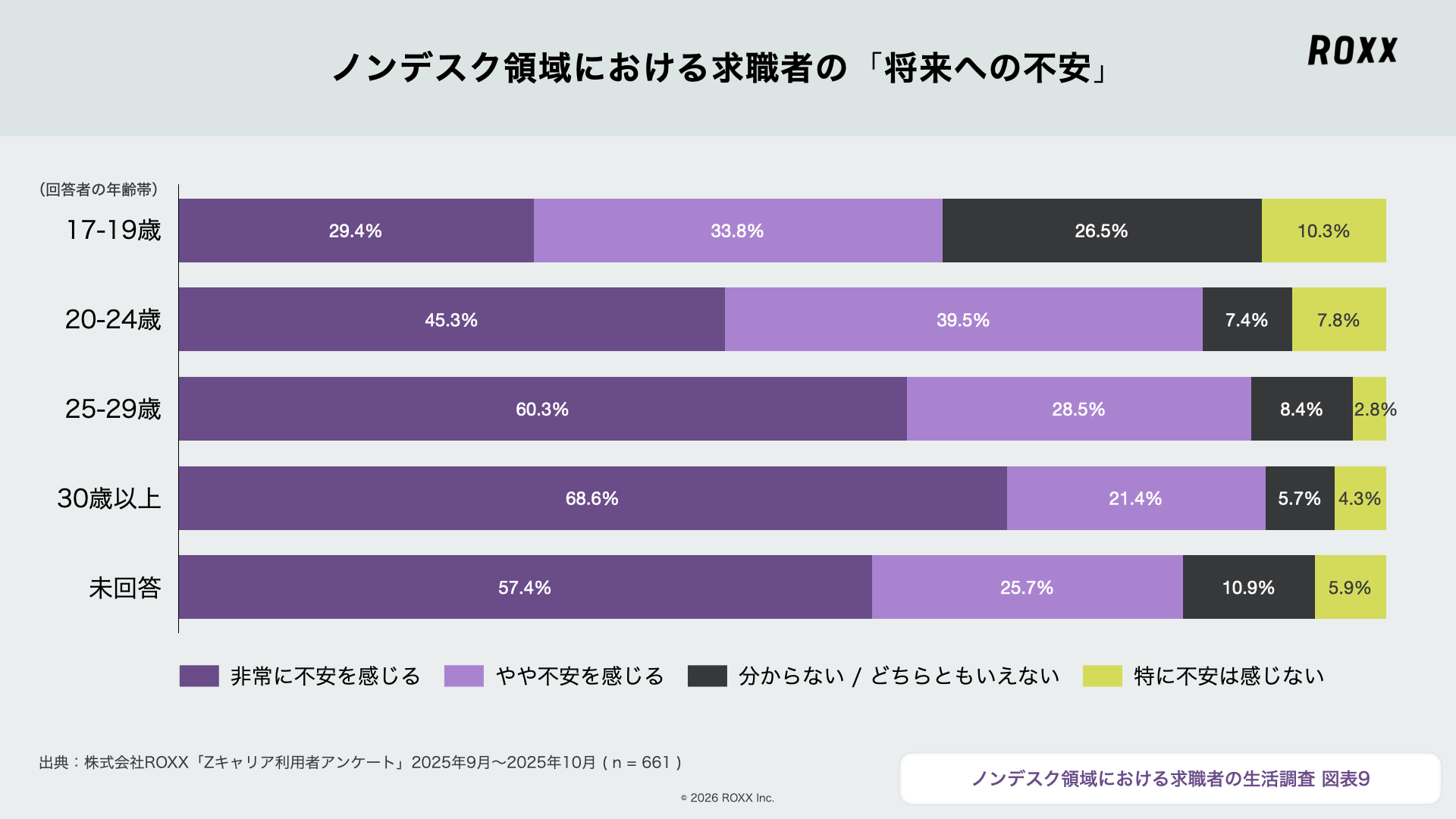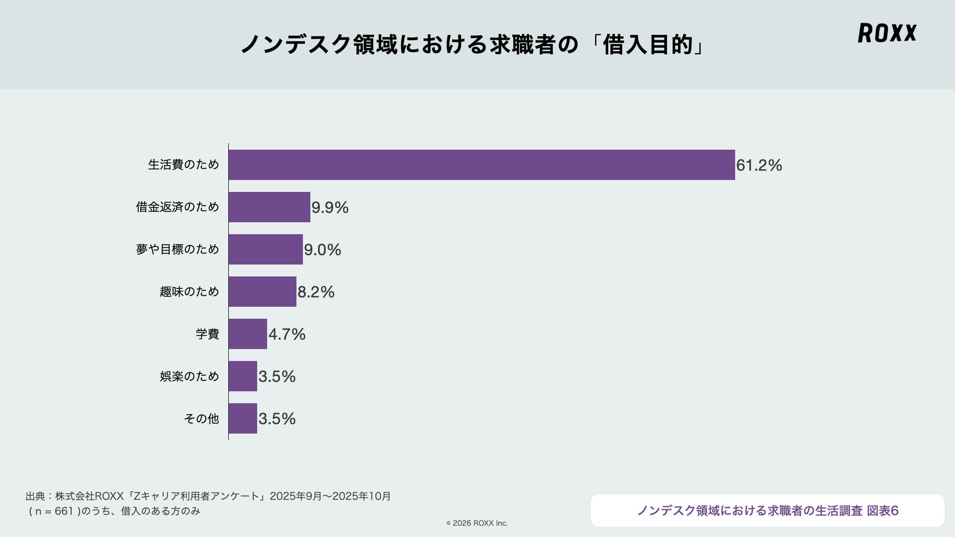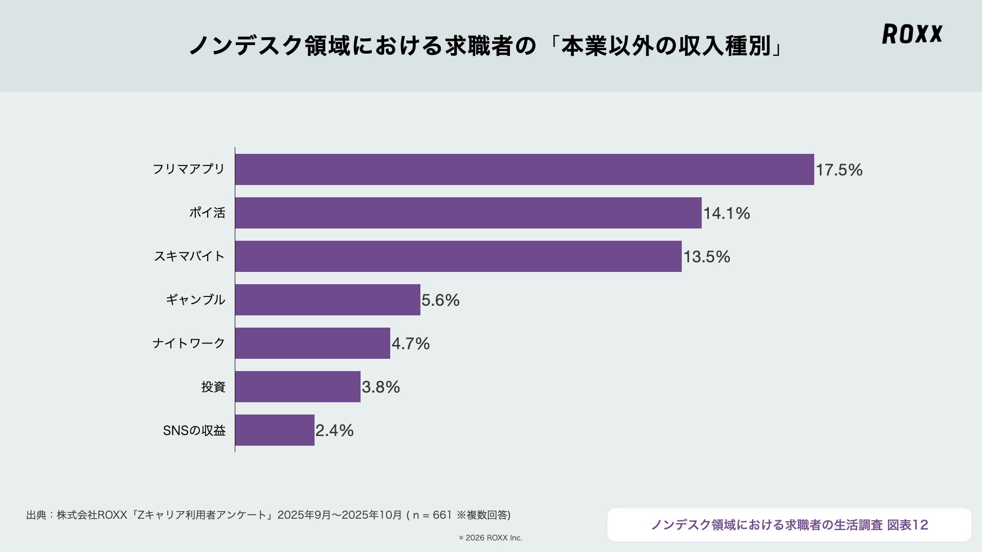 未経験から正社員を目指すノンデスク領域に特化した転職プラットフォーム『Zキャリア』を運営する株式会社ROXX(本社:東京都新宿区、代表取締役社長:中嶋汰朗、東証グロース:241A、以下 ROXX)は、『Zキャリア』を利用している661名にアンケートを実施し、「ノンデスク領域における求職者に関する生活の実態」を調査・分析しました。