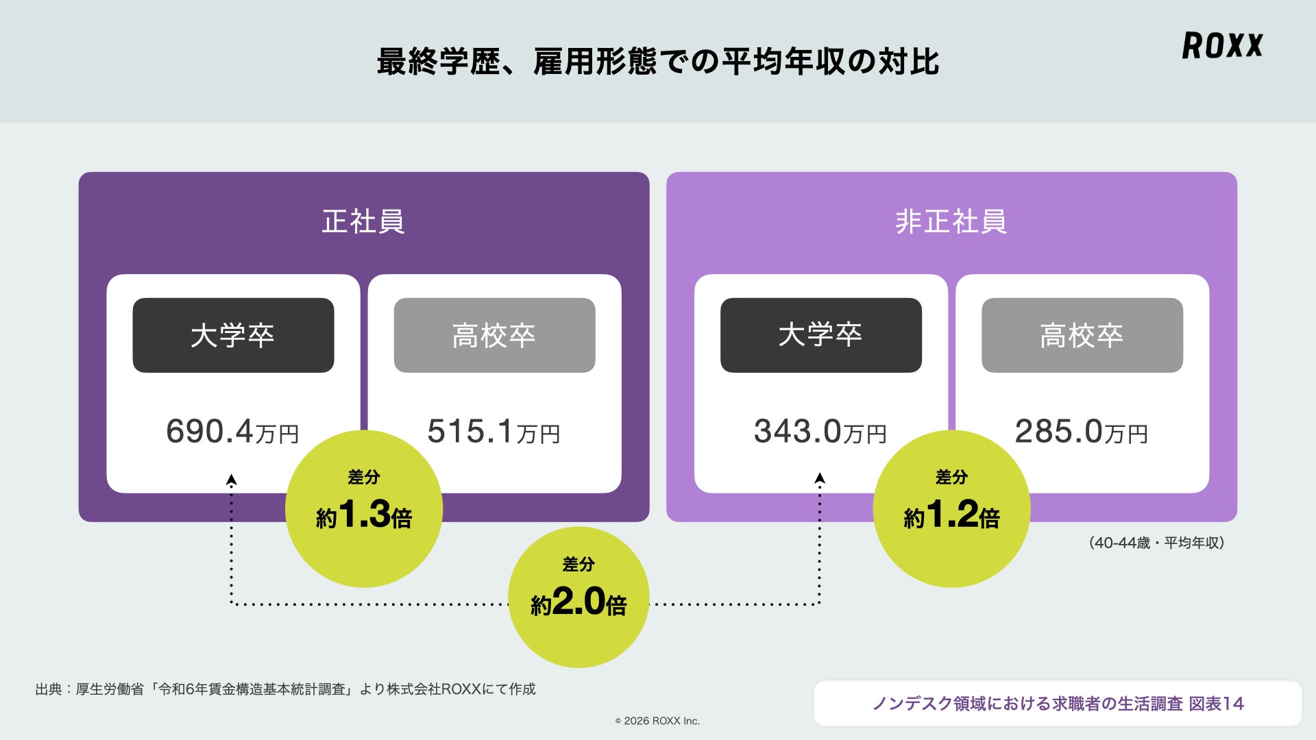 収入の低さや不安定さといった不安の根本的な要因を紐解くと、そこには「雇用形態による収入格差」という構造的な壁があることが明らかになりました。
