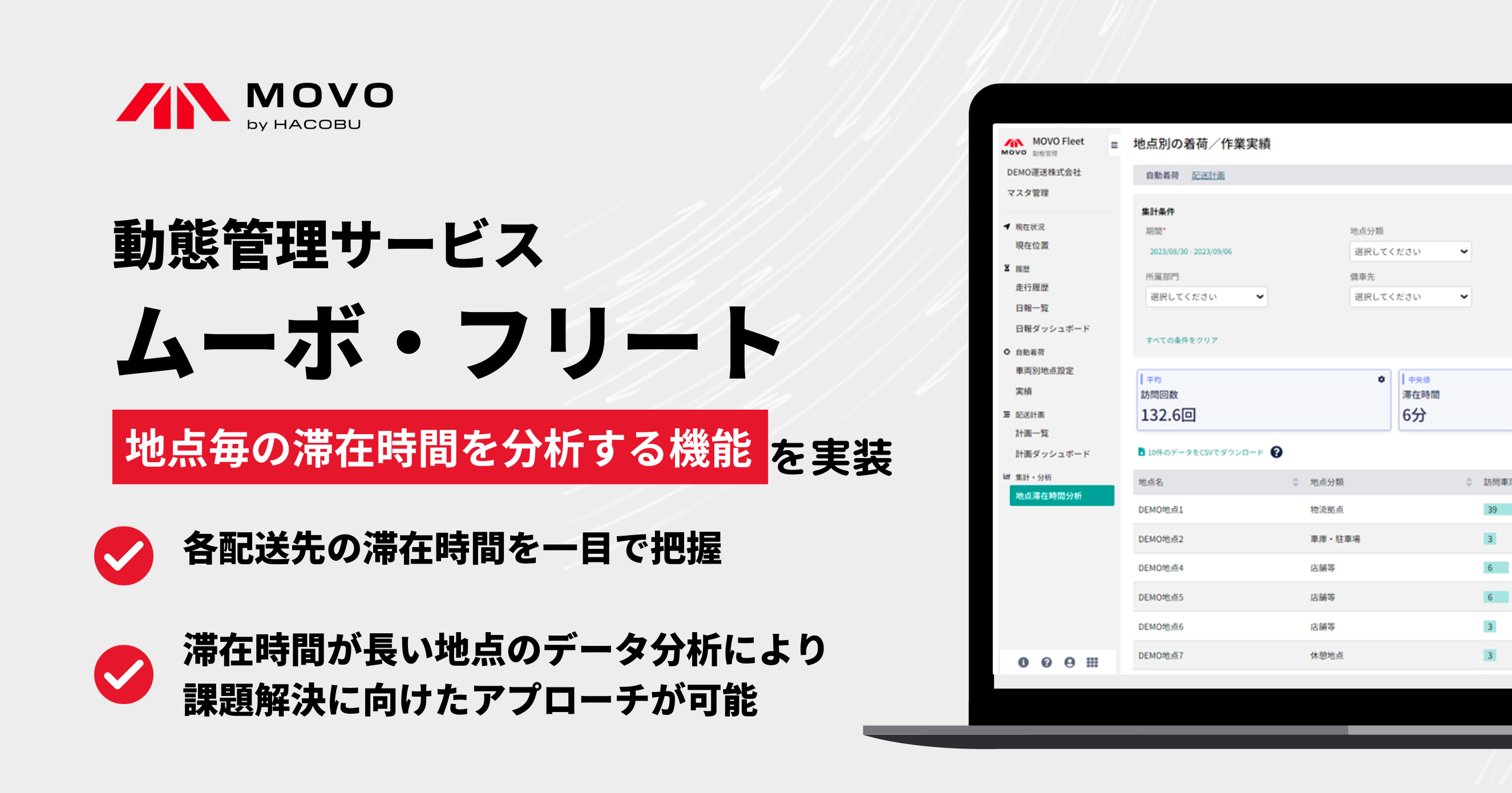動態管理サービス「MOVO Fleet(ムーボ・フリート)」に、地点毎の滞在時間を分析する機能を実装!