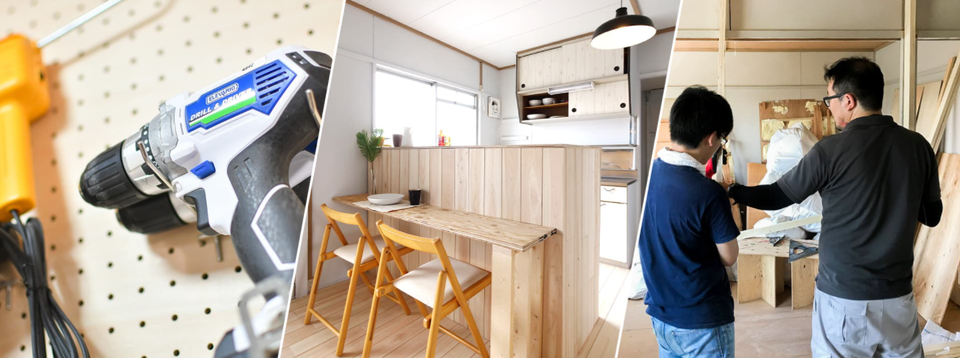 レクチャー対象期間の2ヶ月は家賃無料。材料や道具、レクチャー講師も全て公社が準備しますので、DIY初心者の方でも安心して気軽にDIYリノベーションをお楽しみいただけます。