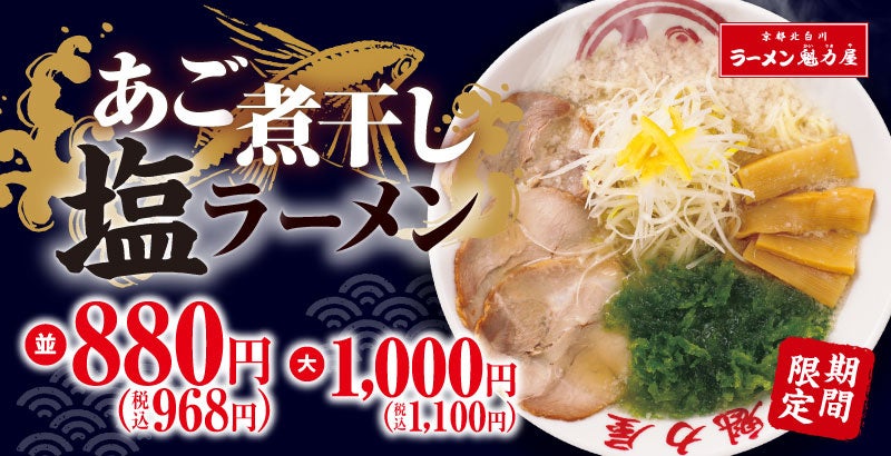 【今年は塩!】煮干し×背脂「あご煮干し塩ラーメン」期間限定発売!