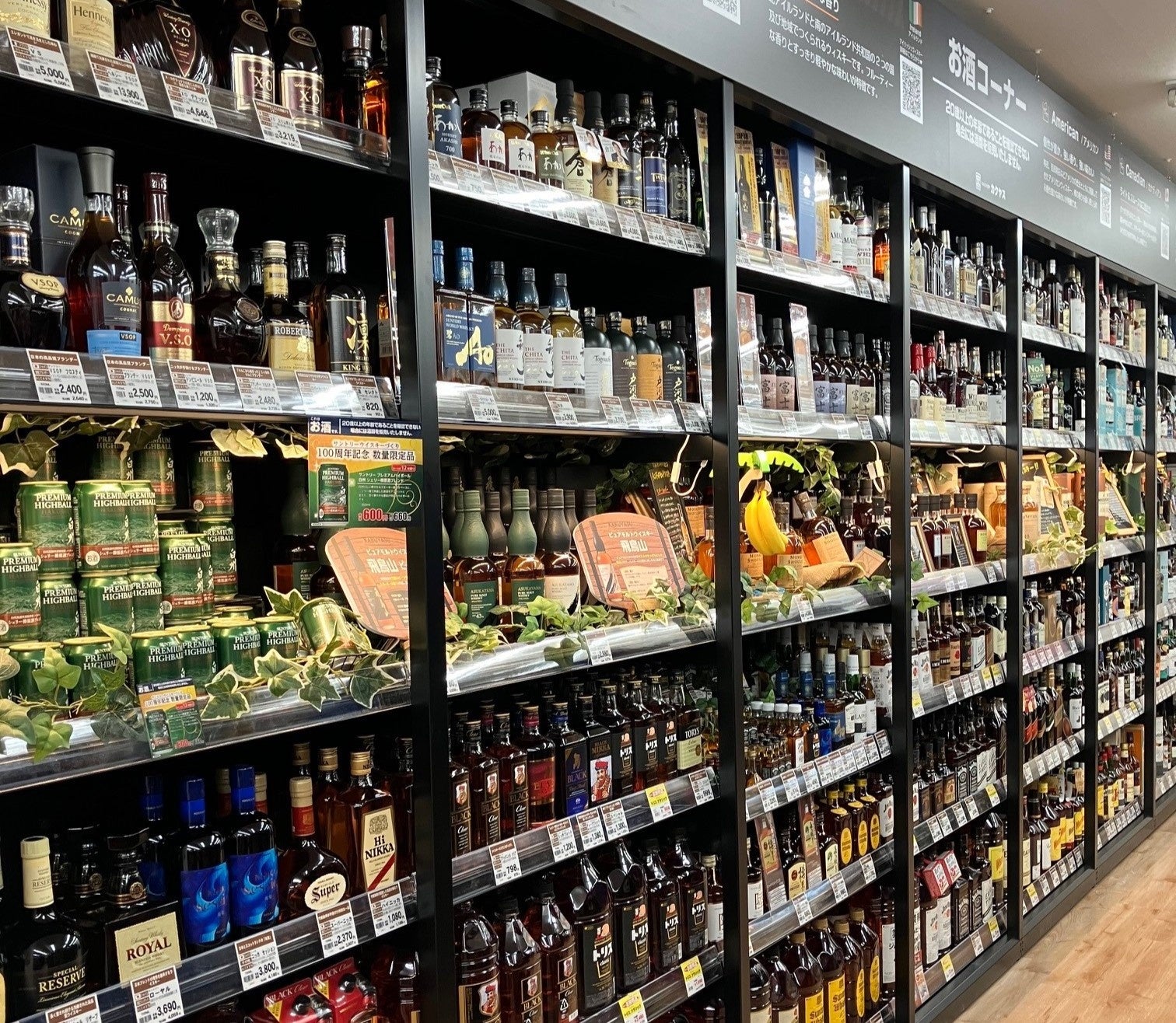 リフレッシュオープンにあたり、ウイスキー・ワインを中心とした品揃えを強化し、特にウイスキーは輸入ウイスキーを中心に約50アイテムを増やしました。また、ビールやRTDのケース販売も拡大いたしました。お客様それぞれのお好みに合うよう多種多様な商品を取りそろえ、選んでいただく楽しい体験価値をご提供します。即日配送サービスも引き続きご利用いただけますので、重たい荷物はもちろん1本からご自宅までお届けいたします。