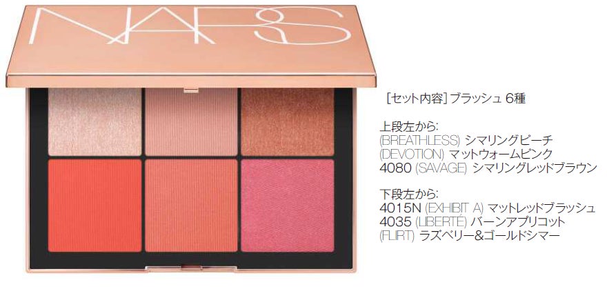 また、きめ細かな超微粒子パウダーでシルキーなピグメントの限定チークパレットは、魅惑的な輝きで頬を演出。