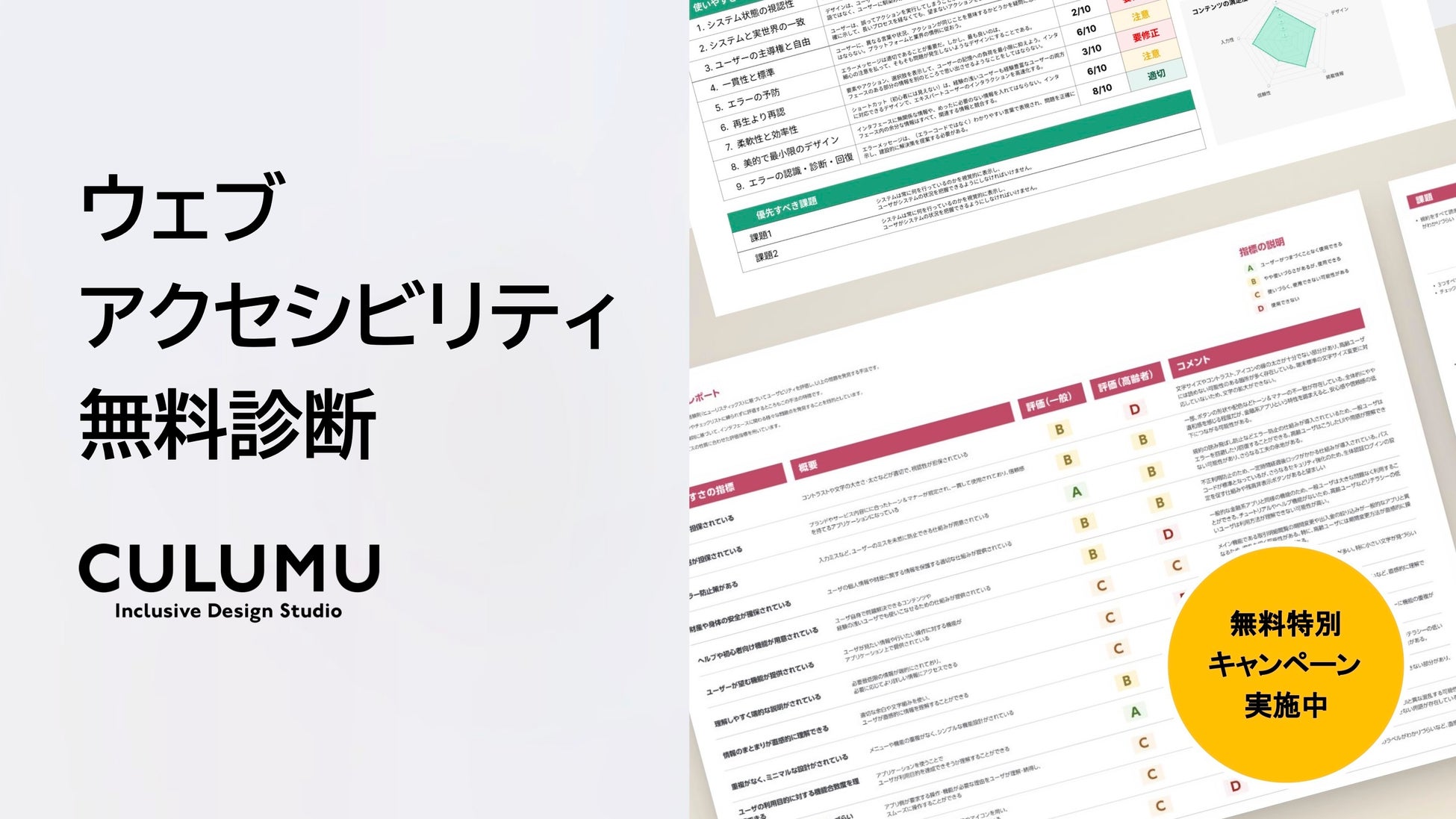 株式会社STYZ(東京都渋谷区、田中辰也 代表取締役社長)が運営するインクルーシブデザインスタジオCULUMU(くるむ)では、2024年4月1日から事業者による障害のある人への合理的配慮の提供が義務化され、ウェブアクセシビリティ(※1)に関する問い合わせをいただく機会が増えたことから、これまでベータ版として公開してきた「アクセシビリティ無料診断」を正式版として11月20日(水)からサービス提供を開始します。