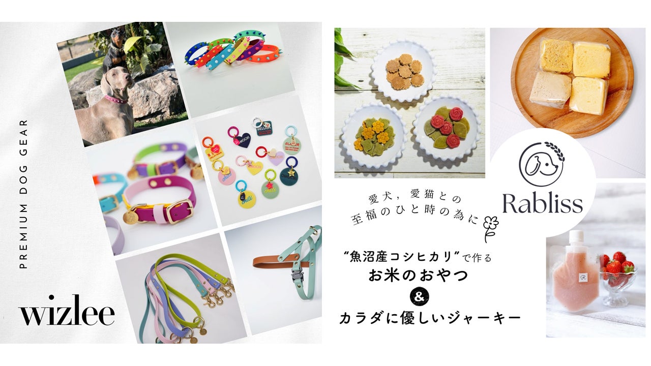 魚沼産コシヒカリの犬猫おやつ、ハーブ鶏ジャーキー、シフォンケーキ、甘酒ドリンク、シャンプーを販売します。