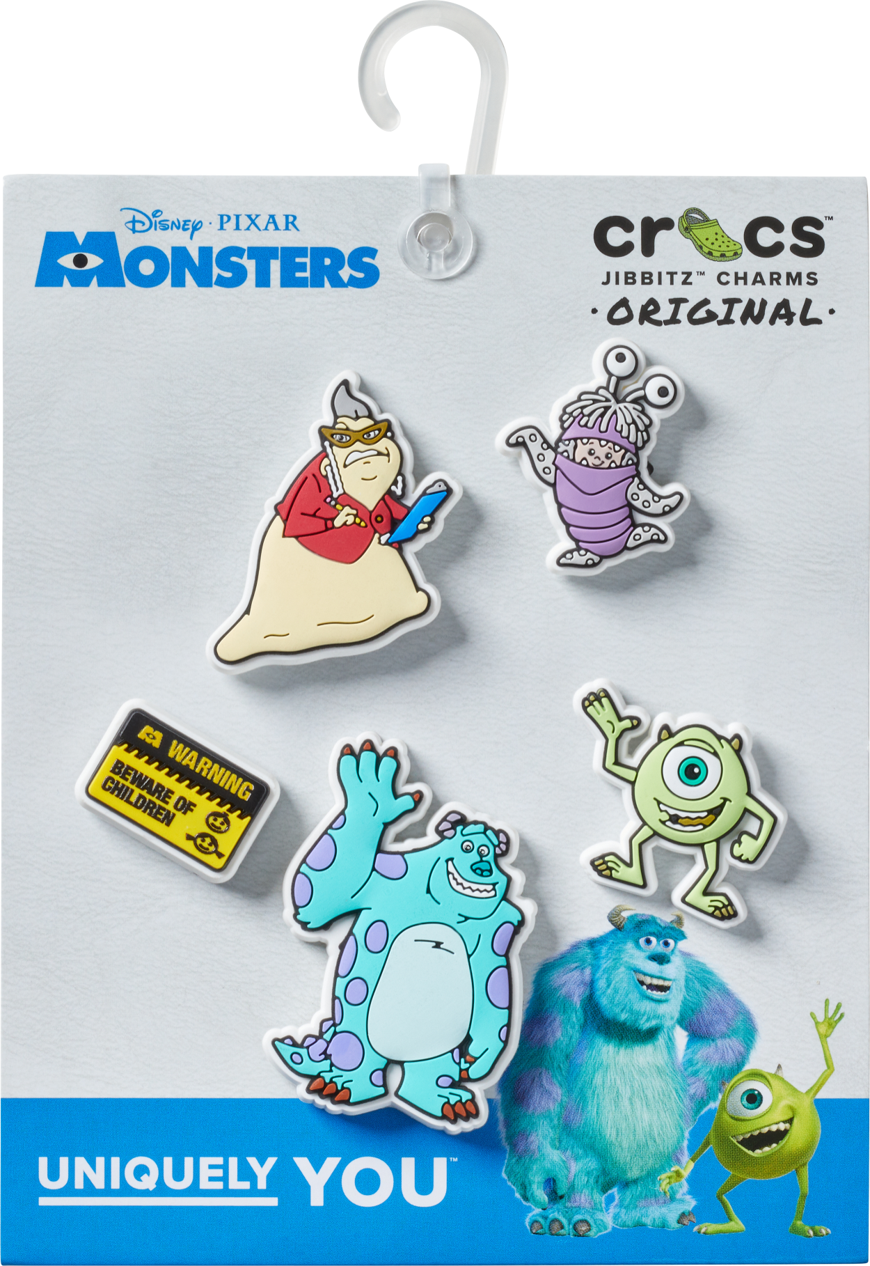 他にもサリーのブルー&パープルの模様やマイクの顔がデザインされたソックスも登場。フットウェアとソックスを合わせればマイクとサリーの名コンビと一緒に冒険を楽しめます。「ジビッツ™ チャーム」には、マイク、サリーに加え、ブーやロズがセットになったマルチパックもご用意しています。