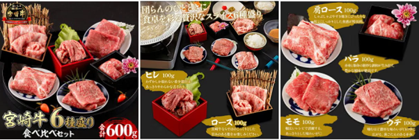 宮崎牛スライス6種食べ比べセット 合計600g 寄付額 ¥20,000