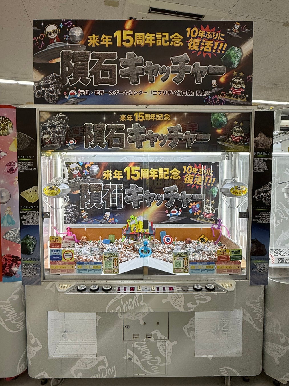 【エブリデイ行田店 来年15周年記念】UFO基地に“隕石”が落下!?本物の隕石が景品のクレーンゲーム「復活!隕石キャッチャー」10年ぶりに復活します!