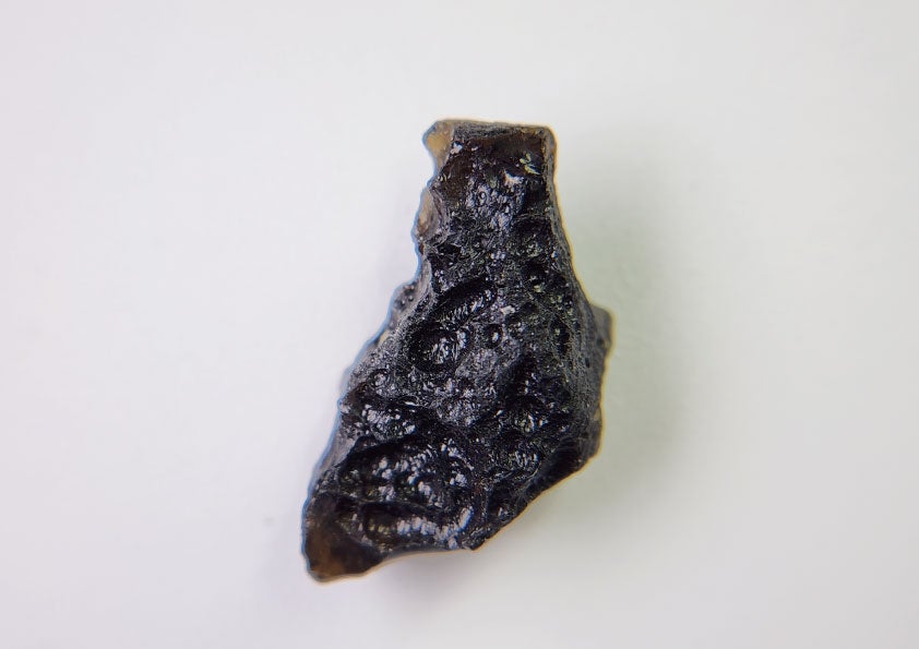 隕石が地球に衝突した際の熱と圧力によって地表の岩石が溶け、ガラス状になって形成された天然ガラス。チェコのモルダウ川流域で発見され、その美しい深緑色が特徴です。