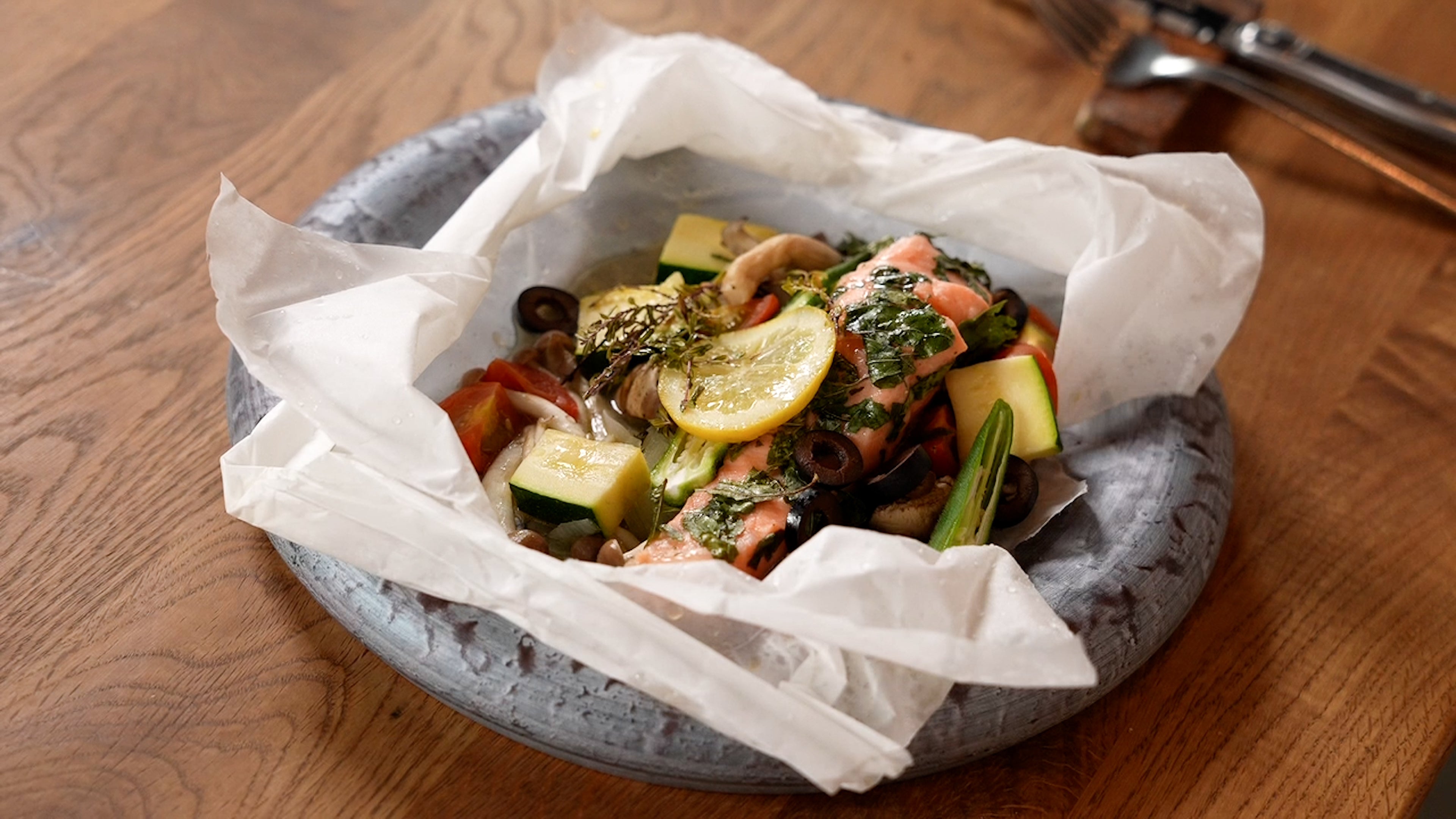 (1)「和のハーブ薫る富士の介の紙包焼き」