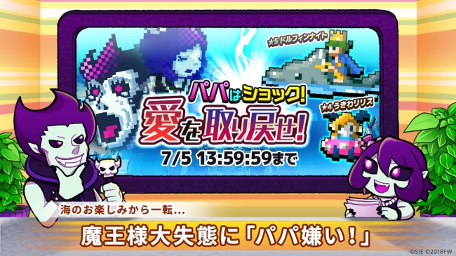 株式会社フォワードワークス(以下、FW)は、スマートフォン向け勇者撃退系パズルRPG『勇者のくせにこなまいきだDASH!(以下、勇こな)』において、2018年6月28日(木)より、期間限定ランキングイベント「パパはショック!愛を取り戻せ!」を開催いたします。