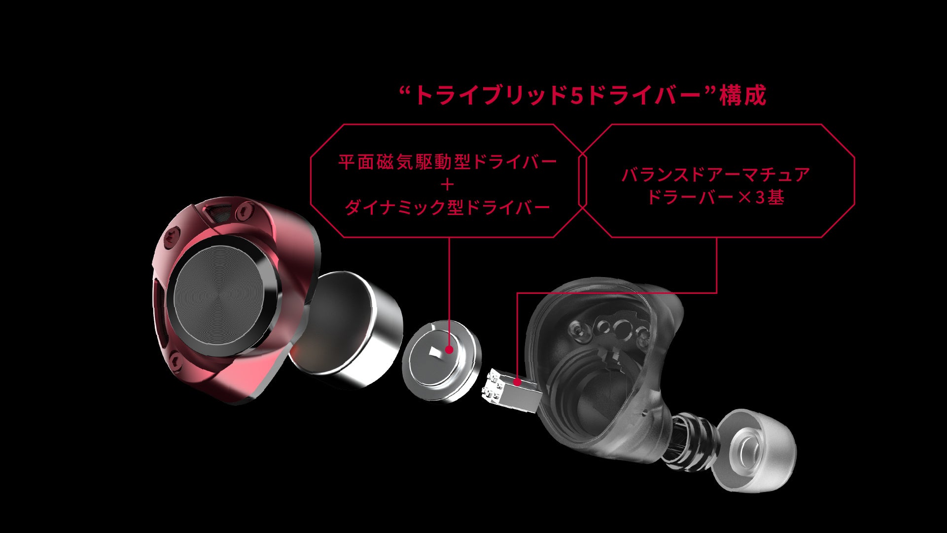 トライブリッド5ドライバー(10mmダイナミックドライバー+平面磁気駆動型ドライバー+3BA)