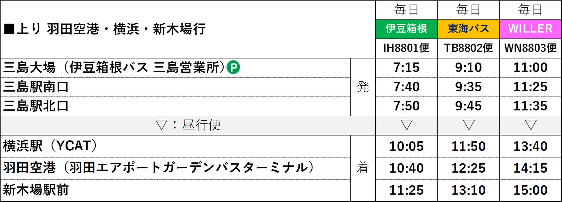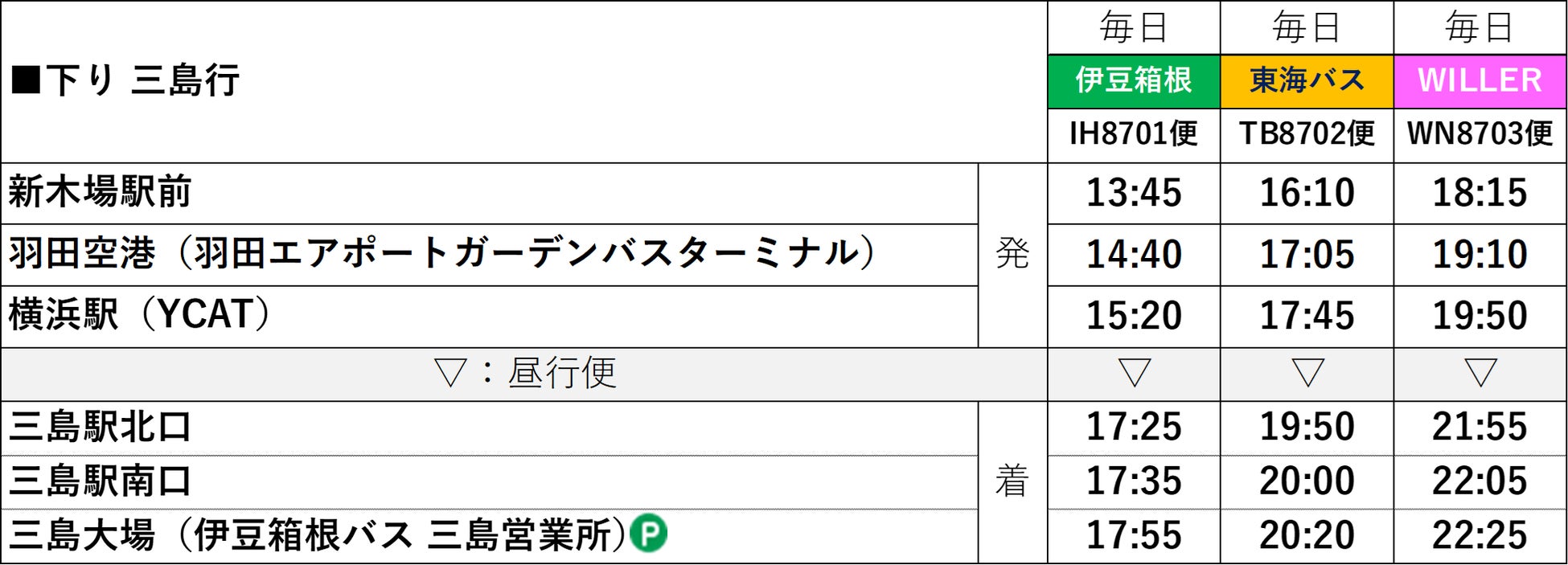 ・利用方法: 羽田空港・横浜・新木場発 ⇒三島行 の便を予約サイト「WILLER TRAVEL」