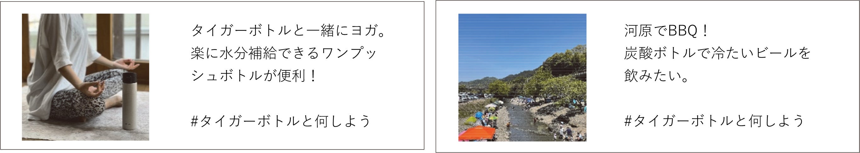 ②#タイガーボトルと何しよう を付けて、タイガーボトルと一緒に行きたい場所・やりたいことの写真とコメントをフィード投稿 ※ストーリーズ投稿は対象外です。