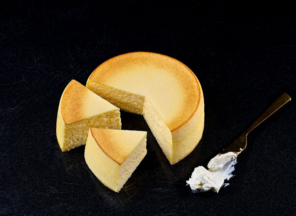 イタリアンメレンゲを使ったシブーストとベイクドチーズケーキの2層になっています。上層はふわっとした柔らかな口当たり、下層はしっとり濃厚な味わいが口の中に広がります。ひとくちで2度おいしいチーズケーキです。