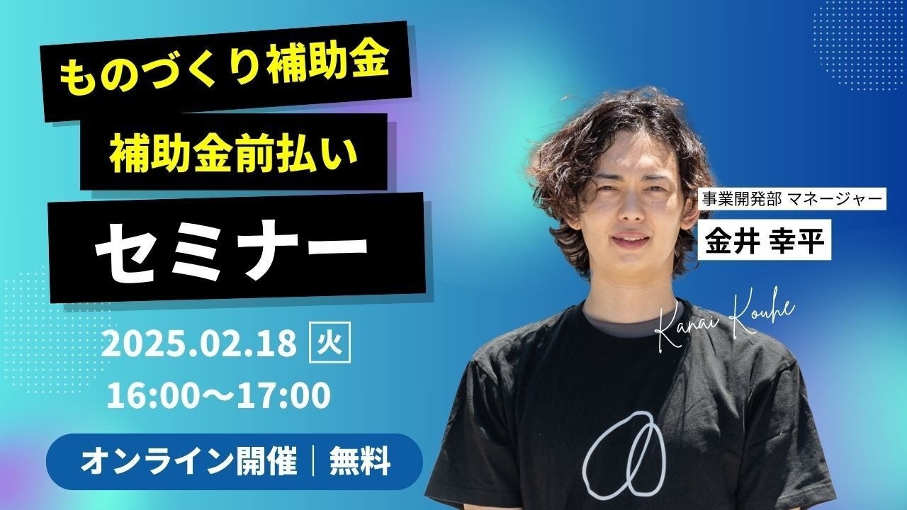 この度、補助金クラウドを運営する株式会社Stayway(本社:大阪府大阪市、代表取締役:佐藤淳、以下「Stayway」)は、2025年に公募予定の”ものづくり補助金”の概要や、ものづくり補助金の前払いを可能にするサービス”前ほじょくん”を解説する「2025年版 ものづくり補助金 + 補助金前払い制度セミナー」をオンライン開催いたします。