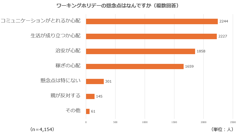 ・ワーキングホリデーの懸念点は「コミュニケーション」「生活の不安」