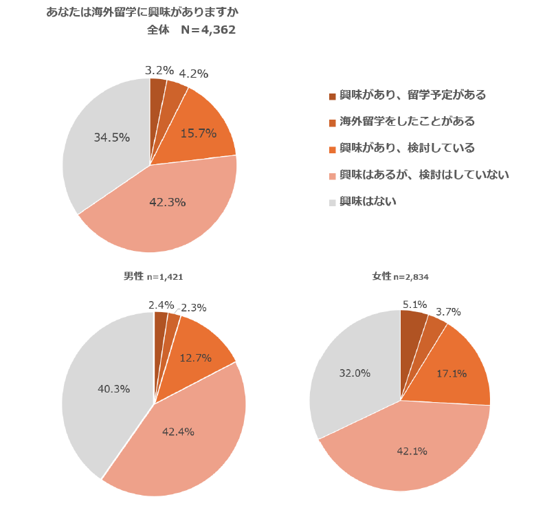 円安でも、学生の約7割は海外留学に興味があることが判明!海外志向が強いのは男性より女性!?海外で働くことへの興味がある人は約5割の結果に