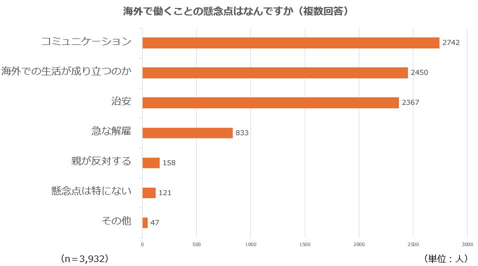 ・海外就労での懸念点は「コミュニケーション」、「生活の不安」、「治安」
