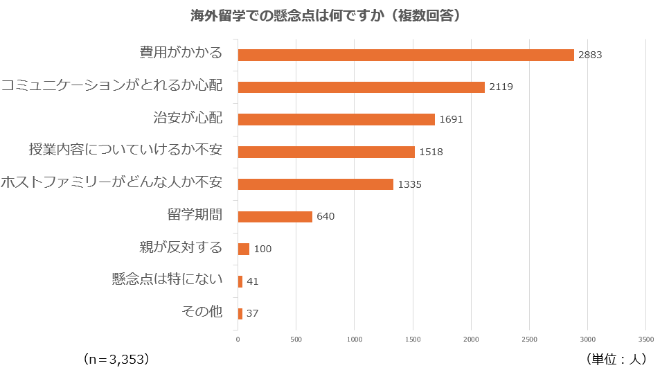 ・海外留学における懸念点は「費用」「コミュニケーション」
