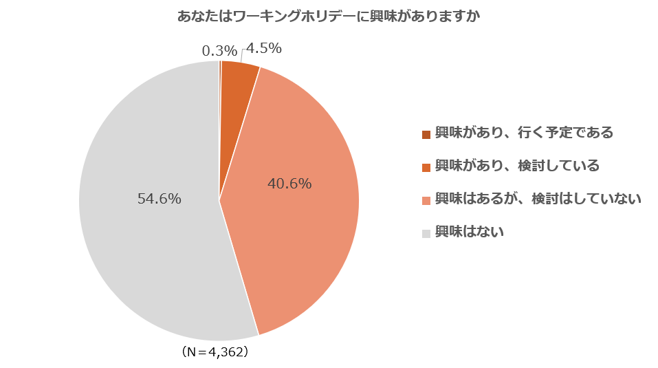 ワーキングホリデーに興味があると回答した学生は全体の約5割(45.4%)という結果になりました。